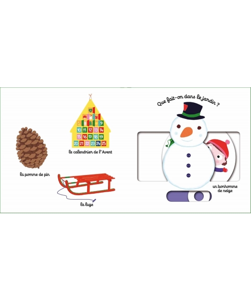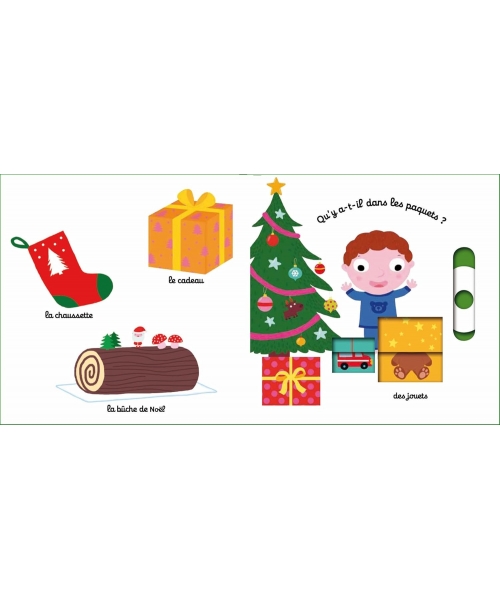 Un imagier avec 5 animations très solides conçues pour les petites mains afin de découvrir les mots de Noël.