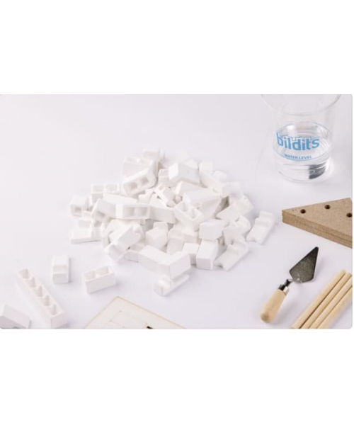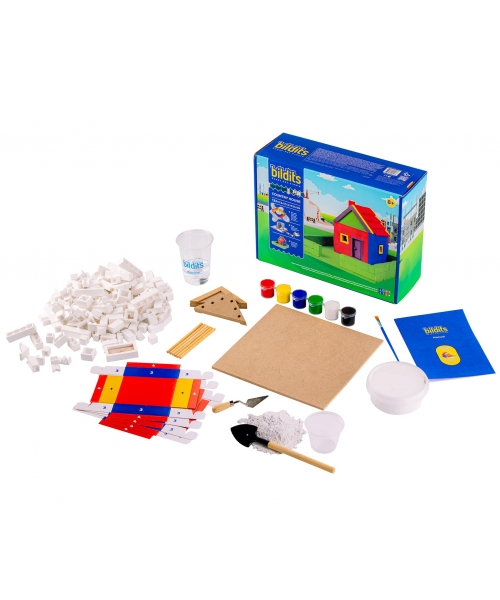 This kit introduces young creators to a more realistic construction experience, while growing their creative thinking and skills. Build like a real engineer as you learn to properly mix cement and make precast walls with window and door frames for more complex builds.