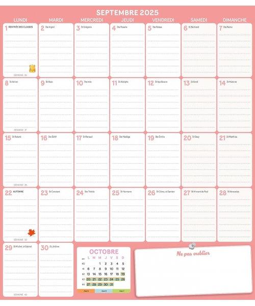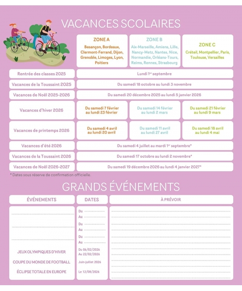 Frigobloc Mensuel 2026 - Calendrier D Organisation Familiale / Mois (De Sept. 2025 A Dec. 2026)