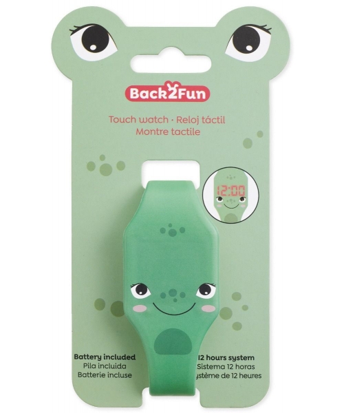 Touch screen that allows you to see the time by pressing the surface. 12-hour system.