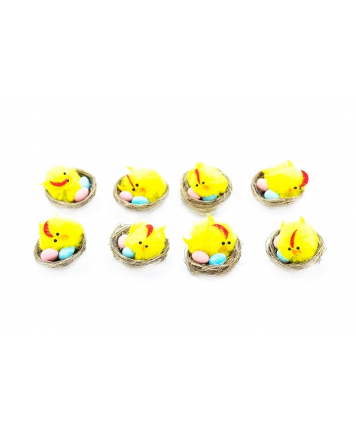 Easter Chenille Chiks In Nid 8Pcs/Pack 4259