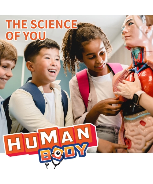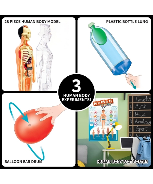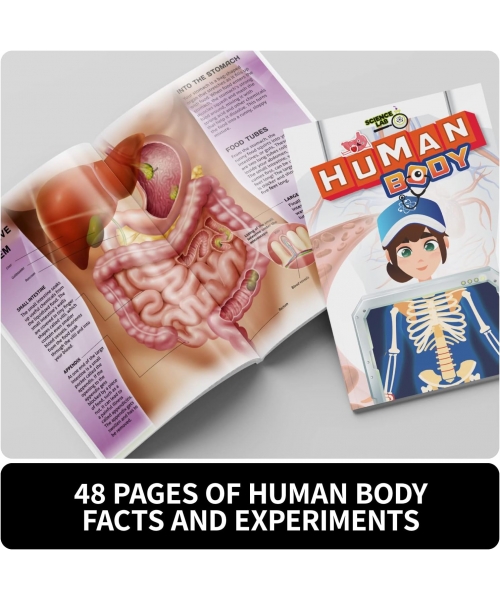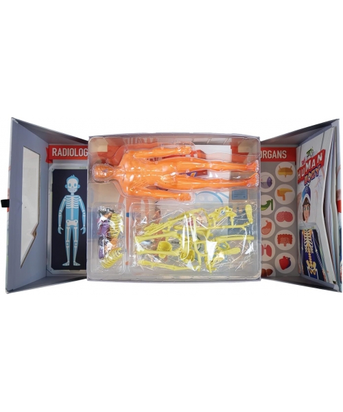 BUILD A HUMAN BODY MODEL: In addition to the full-color book, this kit comes with an 11" human body model that includes the skeletal system and organs encased within a transparent frame.