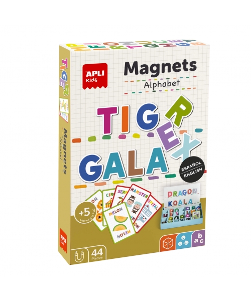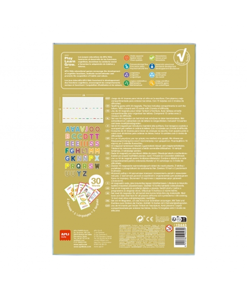 Includes 44 magnetic letters and 15 sheets with examples where the child will be able to learn to write up to 30 different words in Spanish and English with 3 levels of difficulty. This product helps to develop fine motor skills, memory and the imagination, encourages concentration and promotes logical-mathematical thinking.