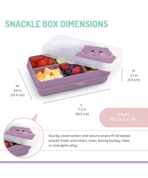 Designed with convenience in mind, the Snackle Box ensures that your child's favorite snacks are neatly organized and easily accessible. The individual compartments keep snacks separated, preventing any unwanted mixing or crushing. Plus, the removable dividers allow for versatile storage options, accommodating both small and large snacks.