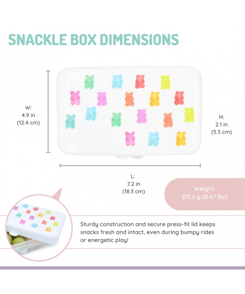Ideal for travel, family outings, school lunches, and road trips, the Snackle Box keeps hunger at bay while providing a fun and engaging experience for your little ones. Its sturdy construction and secure snap-lock lid keep snacks fresh and intact, even during bumpy rides or energetic play.