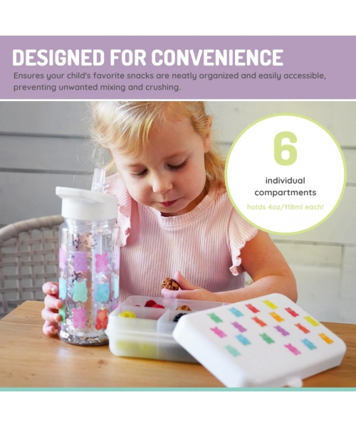Designed with convenience in mind, the Snackle Box ensures that your child's favorite snacks are neatly organized and easily accessible. The individual compartments keep snacks separated, preventing any unwanted mixing or crushing. Plus, the removable dividers allow for versatile storage options, accommodating both small and large snacks.