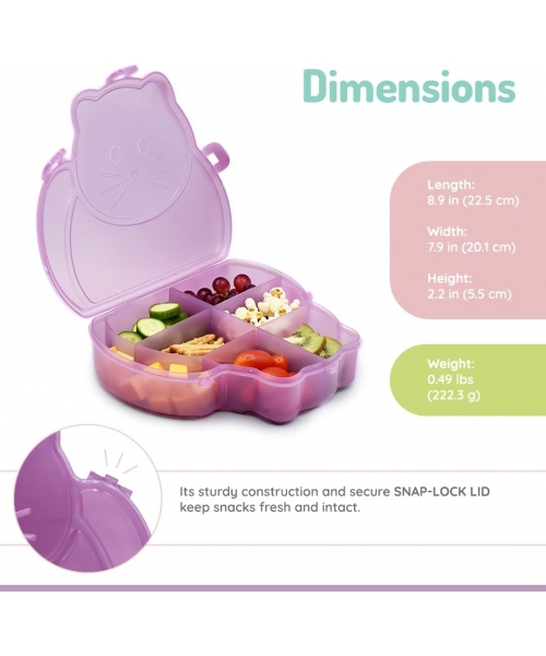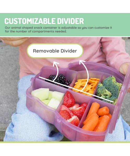 Designed with convenience in mind, the Animal Snackle Box ensures that your child's favorite snacks are neatly organized and easily accessible. The individual compartments keep snacks separated, preventing any unwanted mixing or crushing. Plus, the removable dividers allow for versatile storage options, accommodating both small and large snacks.