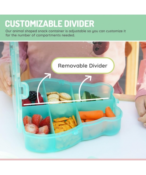 Designed with convenience in mind, the Animal Snackle Box ensures that your child's favorite snacks are neatly organized and easily accessible. The individual compartments keep snacks separated, preventing any unwanted mixing or crushing. Plus, the removable dividers allow for versatile storage options, accommodating both small and large snacks.
