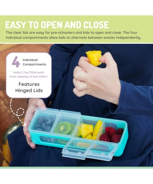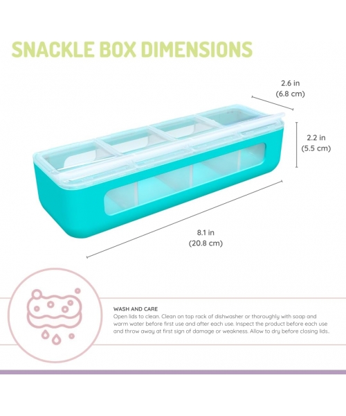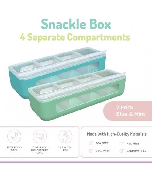 Designed with convenience in mind, the 4 Compartment Snackle Box ensures that your child's favorite snacks are neatly organized and easily accessible. The individual compartments keep snacks separated, preventing any unwanted mixing, crushing or unnecessary spills!