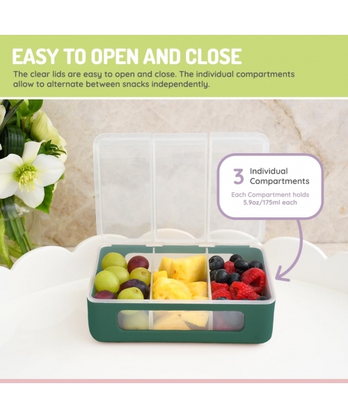 Ideal for travel, family outings, school lunches, and road trips, the 3 Compartment Snackle Box keeps hunger at bay while providing a fun and engaging experience for your little ones. Its sturdy construction and secure snap-lock lid keep snacks fresh and intact, even during bumpy rides or energetic play.