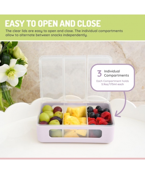 Designed with convenience in mind, the 3 Compartment Snackle Box ensures that your child's favorite snacks are neatly organized and easily accessible. The individual compartments keep snacks separated, preventing any unwanted mixing, crushing or unnecessary spills!
