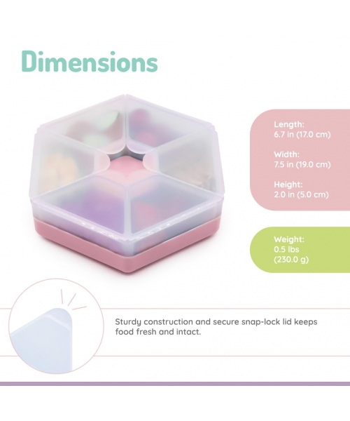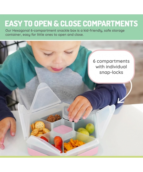 Designed with convenience in mind, the Hexagonal Snackle Box ensures that your child's favorite snacks are neatly organized and easily accessible. The individual compartments keep snacks separated, preventing any unwanted mixing, crushing or unnecessary spills!