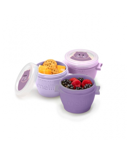 GLASS CONTAINER MELII W/SILICONE SLEEVE 3 PCS 160 ML PINK/PUPLE/GREY 16950