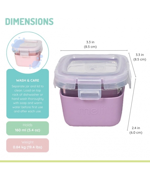 The 5.4oz / 160ml jars are the perfect size for babies starting to eat purees, kids who require an endless assortment of snacks and are also great for salad dressing and snacks for adults. They’re great for meal prep, travel snacks and lunches!