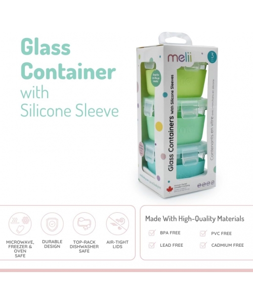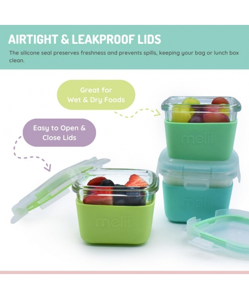 Melii Glass Food Storage Containers with Silicone Sleeve MINT/BLUE/LIME