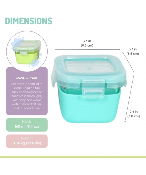 The 5.4oz / 160ml jars are the perfect size for babies starting to eat purees, kids who require an endless assortment of snacks and are also great for salad dressing and snacks for adults. They’re great for meal prep, travel snacks and lunches!