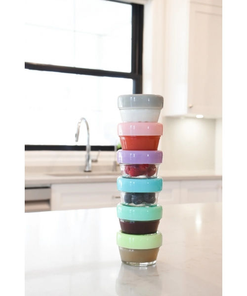 FREEZER, MICROWAVE & DISHWASHER SAFE: Pour homemade baby food into the glass jars, put them in the freezer and before you leave the house, pop it into your diaper bag. When it’s defrosted it's ready to serve! Eating at home? No problem! Pop the container into the microwave and your pre-portioned meal is ready to serve (make sure to remove the lid!).