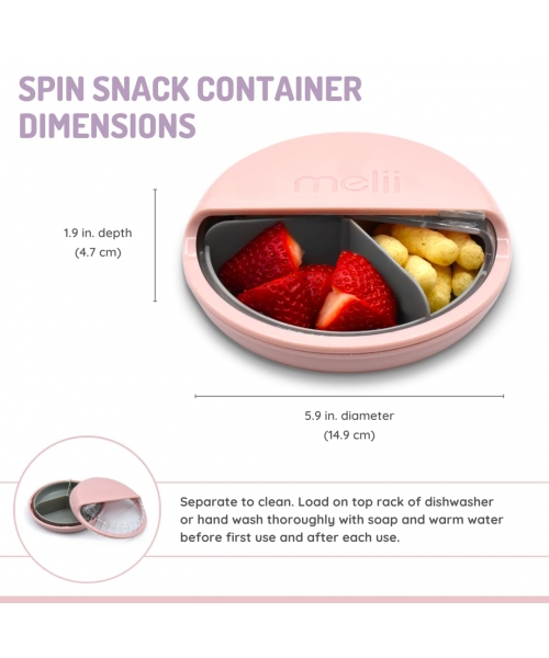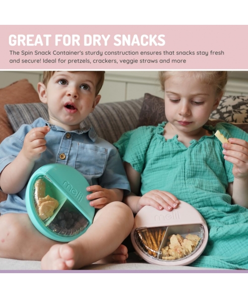 Perfect for on-the-go adventures, the Melii Spin Container is compact and portable, fitting easily into backpacks, lunch bags or diaper bags. Its sturdy construction ensures that snacks stay fresh and secure, while the spinning mechanism adds an extra element of fun.