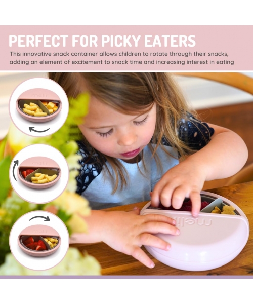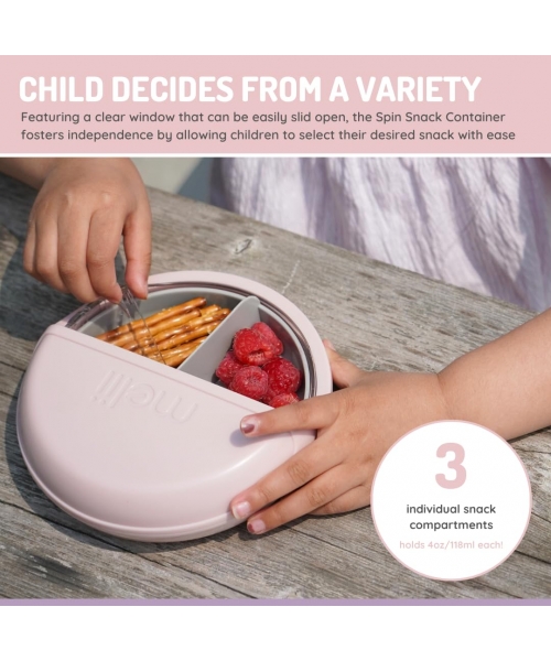 The Melii Spin Container is the ultimate snacking companion for active kids. With three compartments for food, this innovative snack container allows children to spin through their snacks, adding an element of excitement to snack time.