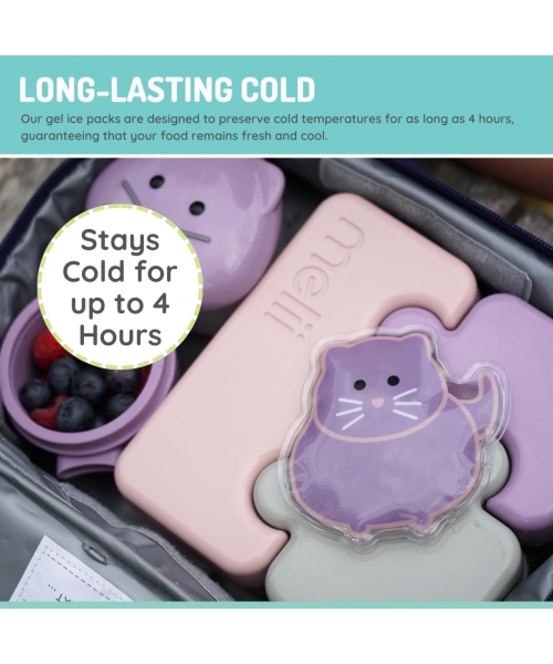 Melii’s Gel Ice Packs are the perfect solution for keeping food cool and fresh on the go. Our ice packs come in a convenient and fun shaped 2-pack and are designed to fit seamlessly into your lunch box, bag or cooler.