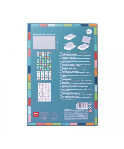 Magnetic game with the alphabet. Learn to write your name or that of different animals with the letter and make your own words with magnetic letters. Each game contains: 1 magnetic stage of 28 x 18 cm that fits on the bottom of the box, 48 magnets with letters, 12 magnets with animals and a guide with the names of the animals of the game in 6 different languages. An exclusive APLI Kids design with original and colorful illustrations.