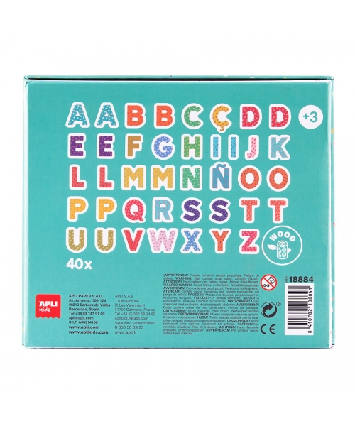 Magnetic game of 40 high quality wooden letters with a magnetic backing.