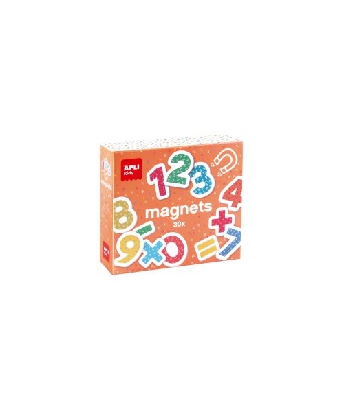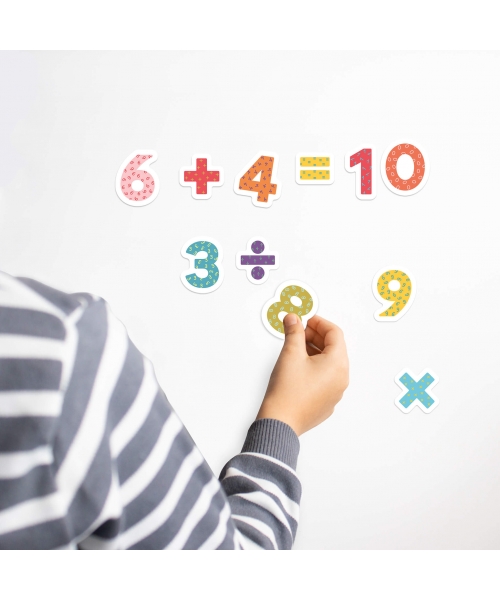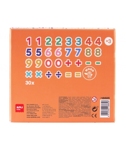 Magnetic game of 30 high quality wooden numbers and symbols with a magnetic sheet.