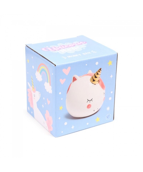 Money Bank Enchanted Rainbows Unicorn Ceramic White Mb267