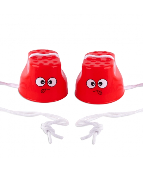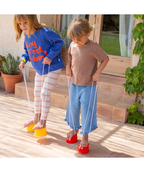 Stilts with cord game from the Party Time collection. The game is about children walking on stilts trying to keep their balance. It is useful in some sports and physical activities to train balance and coordination.