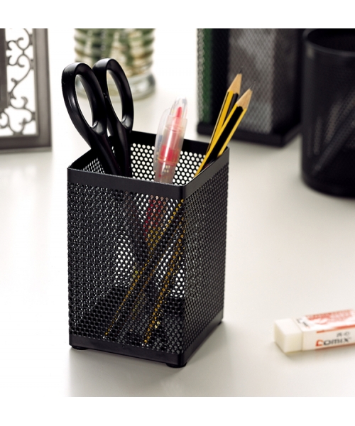 Pen Holder Comix Square Metal Small Holes Black B2003