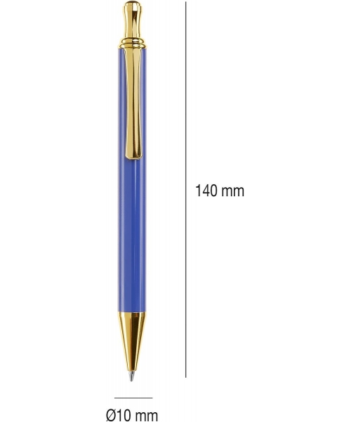 Beautifully elegant Miquelrius ballpoint pens in a case with blue and gold details contribute to a polished and sophisticated note of all important things. Dimensions: box 141x40x15mm, ballpoint pen: 140x10 mm. The ink is blue, 0,7 mm.