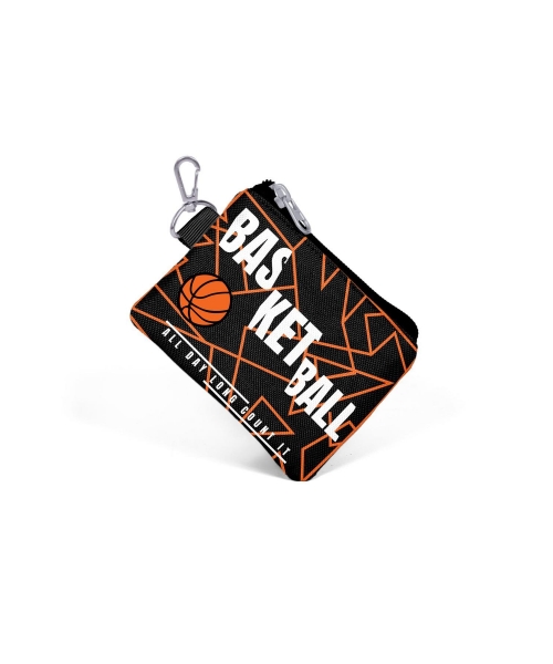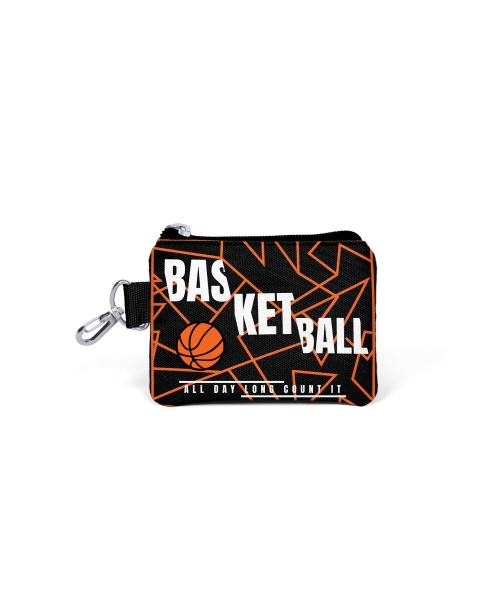 Coral High Kids Orange Navy Blue Basketball Patterned Coin Purse 21895