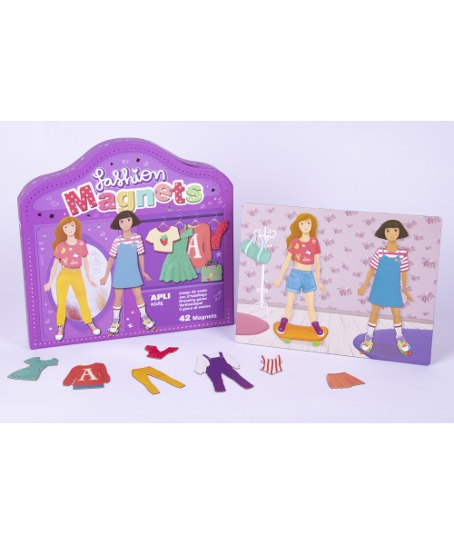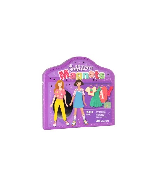 Magnetic game, Fashion model, to dress and undress the two characters with the included clothes and accessories. Each game contains: 1 magnetic stage measuring 28 x 20.5 cm and 42 magnets with different clothes and complements with the most trendy designs. An exclusive APLI Kids design with original and colourful illustrations. A game with a high didactic value: Encourages observation and imagination; increases concentration and attention; generating interest in objects, animals and characters they do not know. Recommended for children of 6 years or older.