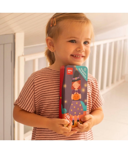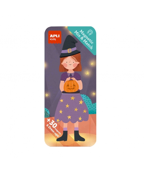 Metallic box to mix and match different pieces of clothing and decorative elements with theater theme. The box size is 90 x 32 x 203 mm, an ideal size to take wherever you want. Each box contains 30 magnets. Dress up the characters as many times as you want!