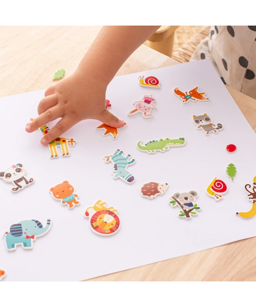 Decorative stickers with Jungle animals theme. Ideal for children to have fun and create their own adventures with them. The bag includes 24 soft EVA foam stickers with cute wild animals designs. Ideal to decorate your favourite objects, congratulations cards, wrap presents, etc