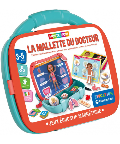 L’enfant pourra s’amuser avec les aimants à travers de nombreuses activités sur le corps humain, les émotions et les vêtements. Le livret inclus propose un parcours éducatif structuré pour guider l’enfant dans son apprentissage. La mallette est pratique à emporter partout avec soi et est dotée de nombreux compartiments pour garder les composants du jeu bien rangés. L’ardoise sur laquelle sont collés les aimants présente un côté sur lequel l’enfant peut écrire avec le feutre effacable fourni.