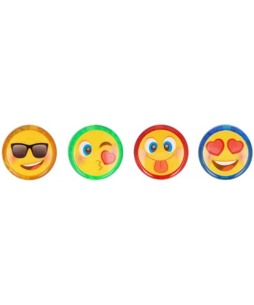 These light up return tops feature cheerful yellow smile face designs. There are 4 assorted designs available. Measuring 5.4cm, these return tops are suitable for various uses. They can serve as party favours, lucky dip prizes, or stocking fillers. They are also functional toys for playing games and learning return top tricks.